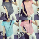 青春活力甜美百搭POLO领纽扣修身卡通萌潮流学生条纹中长款衬衫女