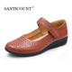 圣帝伯爵新款女凉鞋中老年女鞋软底妈妈鞋夏季冲孔凉皮鞋平底单鞋