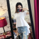 柔柔家2017夏季新款韩版时尚蕾丝拼接荷叶边吊带露肩宽松雪纺衫女