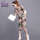 杭依阁 套装女2017夏装新款韩版修身印花上衣女装 时尚休闲两件套