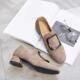 伊百薇正品女鞋春季新款真皮单鞋复古方头中跟小皮鞋磨砂软皮软底