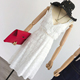 2017春季新款韩版气质V领睫毛蕾丝拼接羽毛修身无袖连衣裙吊带裙