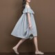 孕妇装夏季上衣2017夏季棉麻露肩a字裙喇叭袖娃娃裙子纯色连衣裙