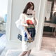 时尚孕妇装夏装新款孕妇t恤短袖中长款白色卡通体恤裙宽松大码潮