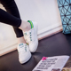 清新白色皮面帆布鞋女学生透气百搭小白鞋女魔术贴休闲鞋厚底板鞋
