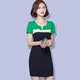 2017时尚春夏女装韩版包臀撞色拼接短袖连衣裙修身显瘦一步裙职业