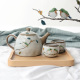 日式和风可爱绣眼鸟茶具创意个性功夫茶壶茶杯套装粗陶釉下彩漫喵