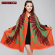 两头门 春秋季新款拉绒双层披肩女士围巾两用丝绸丝巾保暖送礼盒