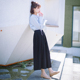 安小落2017春季新款风琴百褶阔腿裤女宽松松紧腰休闲百搭九分裤潮
