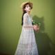 安小落 2017春夏文艺两件套蕾丝刺绣花仙白色连衣裙复古 有系带
