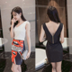 2017时尚女装V领性感露背上衣名媛气质修身包臀高腰短裙两件套装