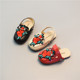 欧美风女童玫瑰花刺绣包头半凉鞋两穿拖鞋儿童穆勒鞋夏季小童皮鞋