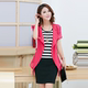 2017夏季新款大码女装OL小西装外套女条纹背心雪纺连衣裙两件套