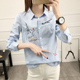 娅色衬衣女长袖2017春装新款女装韩版刺绣条纹学休闲宽松百搭衬衫