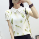 悦娜雪纺衫女2016夏装新款韩版娃娃领印花时尚雪纺上衣短袖雪纺T