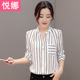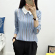 V领雪纺衫女2017春装新款条纹衬衫上衣韩版秋冬宽松小衫打底衫潮