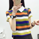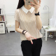 雪纺衫女短袖 2017夏装新款娃娃领宽松显瘦上衣竖条纹打底衫潮
