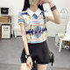 短袖雪纺衫2016夏装新款 韩版女装大码显瘦印花t恤小衫雪纺上衣