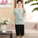 夏季新款中老年女套装奶奶装短袖翻领衬衫印花九分裤妈妈装