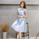 夏韩版抽绳束腰时尚休闲棉麻短袖圆领连衣裙