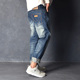 2017夏季做旧复古牛仔裤男装潮BOY街舞宽松浅色简约长裤子青少年