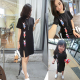 LUSON女童 亲子装母女装短袖裙子春款2017特色假两件T恤连衣裙