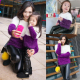 LUSON 亲子装2016冬装新款母女装紫白撞色加厚针织毛衣儿童针织衫