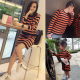 LUSON女童 亲子装母女装春夏一家五口全家装家庭装条纹短袖连衣裙