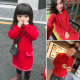 LUSON一家四口新年亲子装2017春新款母女毛衣连衣裙红色过年年服