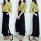 2017新款女装夏季名媛气质两件套碎花雪纺衫阔腿裤九分裤时尚套装