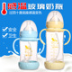 贝恩宝新生儿婴儿防摔防胀气双层宽口径玻璃奶瓶带吸管手柄奶瓶