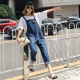 春装韩版新款水洗宽松九分直筒哈伦背带裤显瘦BF休闲牛仔裤女学生