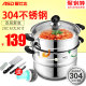 爱仕达蒸锅304不锈钢二层双层28CM加厚复底电磁炉锅具蒸格锅