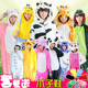 春秋季卡通动物连体睡衣长袖男女成人纯棉可爱家居服如厕版