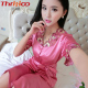 睡袍女夏季薄款长袖性感简约系带睡衣中长款冰丝绸家居服日式浴衣