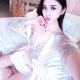 春秋可爱薄款短袖日系性感睡袍浴袍睡裙夏季睡衣女丝绸韩版家居服