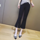 春款高腰微喇叭开叉薄款九分裤女阔腿显瘦黑色百搭喇叭裤弹力9分