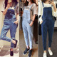 2016秋季新款宽松松紧腰牛仔背带裤女学生韩版学院风高腰吊带长裤