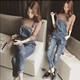 2016新款夏季破洞可拆卸牛仔背带裤女学生宽松大码显瘦连体九分裤