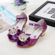 女童高跟凉鞋新夏款蕾丝kt猫花朵韩版儿童春秋皮鞋女孩公主表演鞋