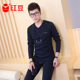 贴身领域 简约V领加厚加绒保暖内衣冬季修身青年男士秋衣秋裤套装