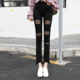 春夏高腰紧身打底裤女外穿裤脚开叉九分裤显瘦小脚裤黑色弹力裤潮