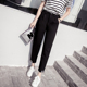 春夏韩范裤脚卷边九分裤宽松显瘦高腰西裤女哈伦裤大码休闲萝卜裤