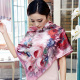 真丝加厚大方巾 140*140喷绘文艺手工无缝锁边 桑蚕丝围巾春秋冬