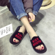 夏季韩版字母拖鞋女平底一字拖厚底松糕中跟百搭学生沙滩凉拖鞋潮