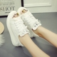 女鞋2017春百搭运动韩版厚底松糕内增高刺绣小白鞋女镂空休闲板鞋