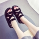 夏季新款一字拖松糕坡跟防水台鱼嘴凉拖鞋镂空内增高厚底高跟鞋女
