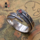高桥印第安风格 复古纯银羽毛开口戒指 镶嵌红锆石 厂家直销