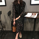 周木木 小女人淑女收腰雪纺百褶连衣裙 小碎花 7分袖