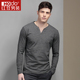 Hodo/红豆男装春季新款时尚修身V领男士T恤长袖打底纯色长袖T恤男